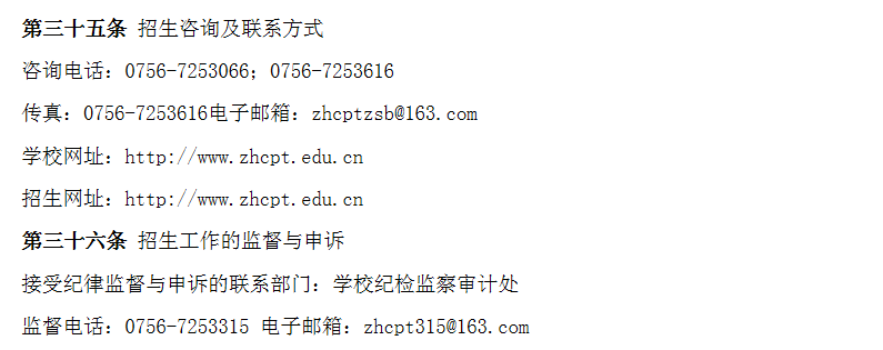 第十三条 学校设立由学校领导和纪检监察部门组成的招生监督小组,对招生工作实施监督。在录取期间成立信访组,安排专人负责考生的信访、申诉、投诉处理工作。